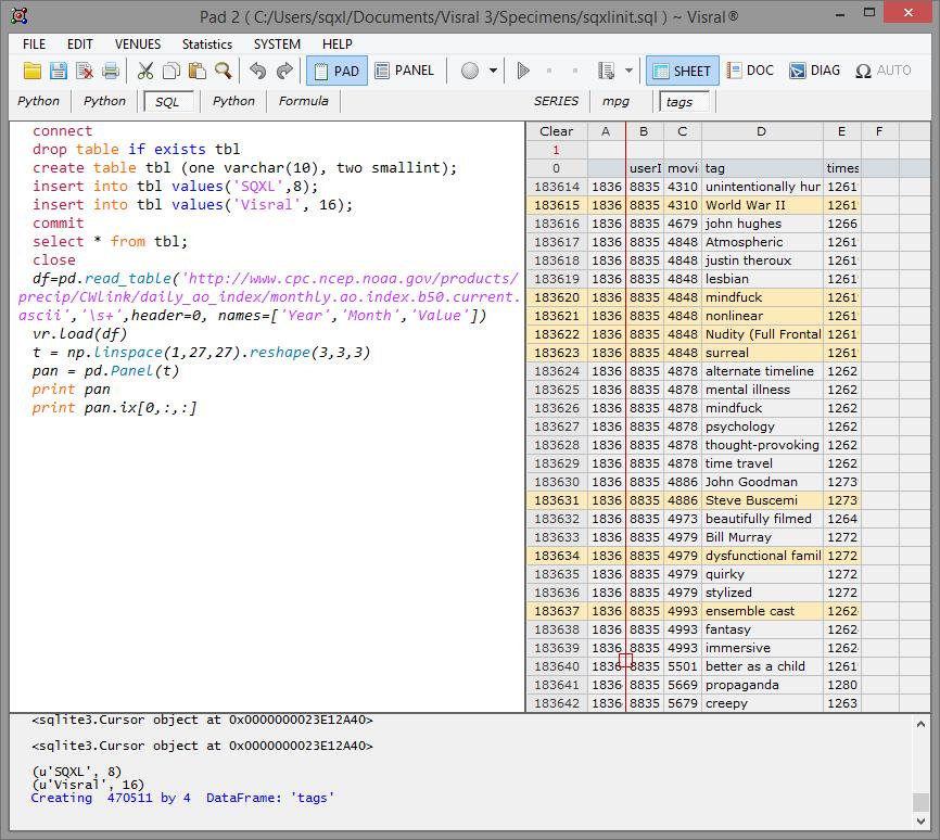 Python’s native interface is a command line interpreter much like that of the non-graphical command-line-driven DOS operating system. This is where SQXL comes in.